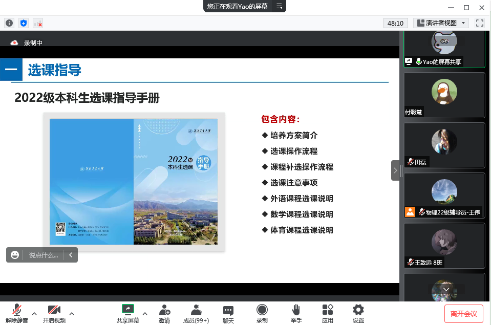 为了帮助新生尽快熟悉选课规则、了解选课基本操作流程,8月30日上午,bevictor伟德官网联合教务处学生注册中心,在线上进行了2022级新生选课指导活动,会议活动由2022级辅导员王伟主持。