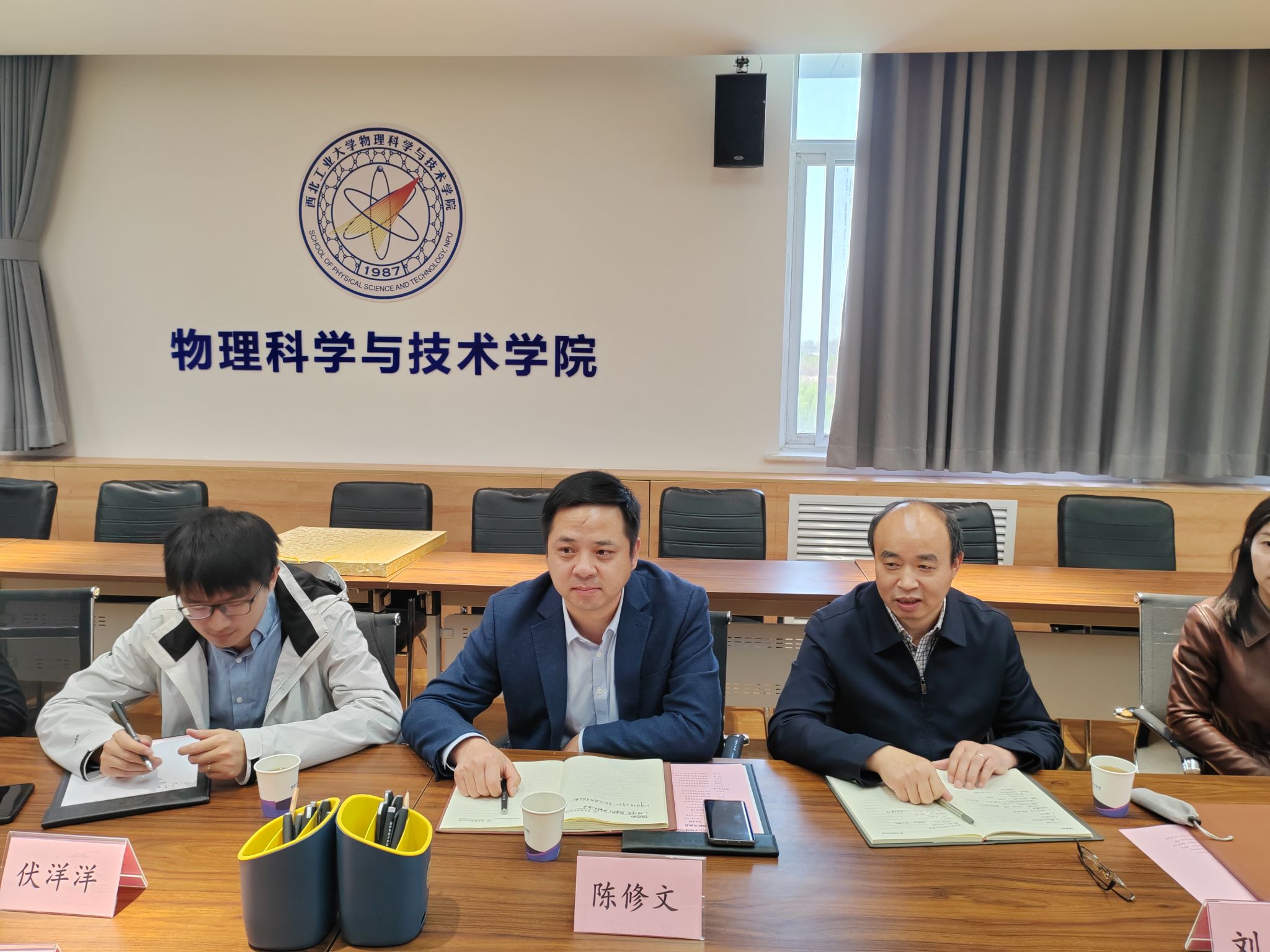 会上,晁小荣代表学院对南京航空航天大学物理学院的到访表示热烈欢迎。晁小荣、陈修文分别介绍了双方参会人员。
